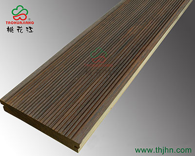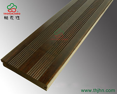 桃花江戶外重竹地板顏色為碳化色,根據(jù)碳化的時(shí)間與溫度,可以分成深碳,淺碳,和中碳。目前比較多的是中碳,色調(diào)溫和美觀。