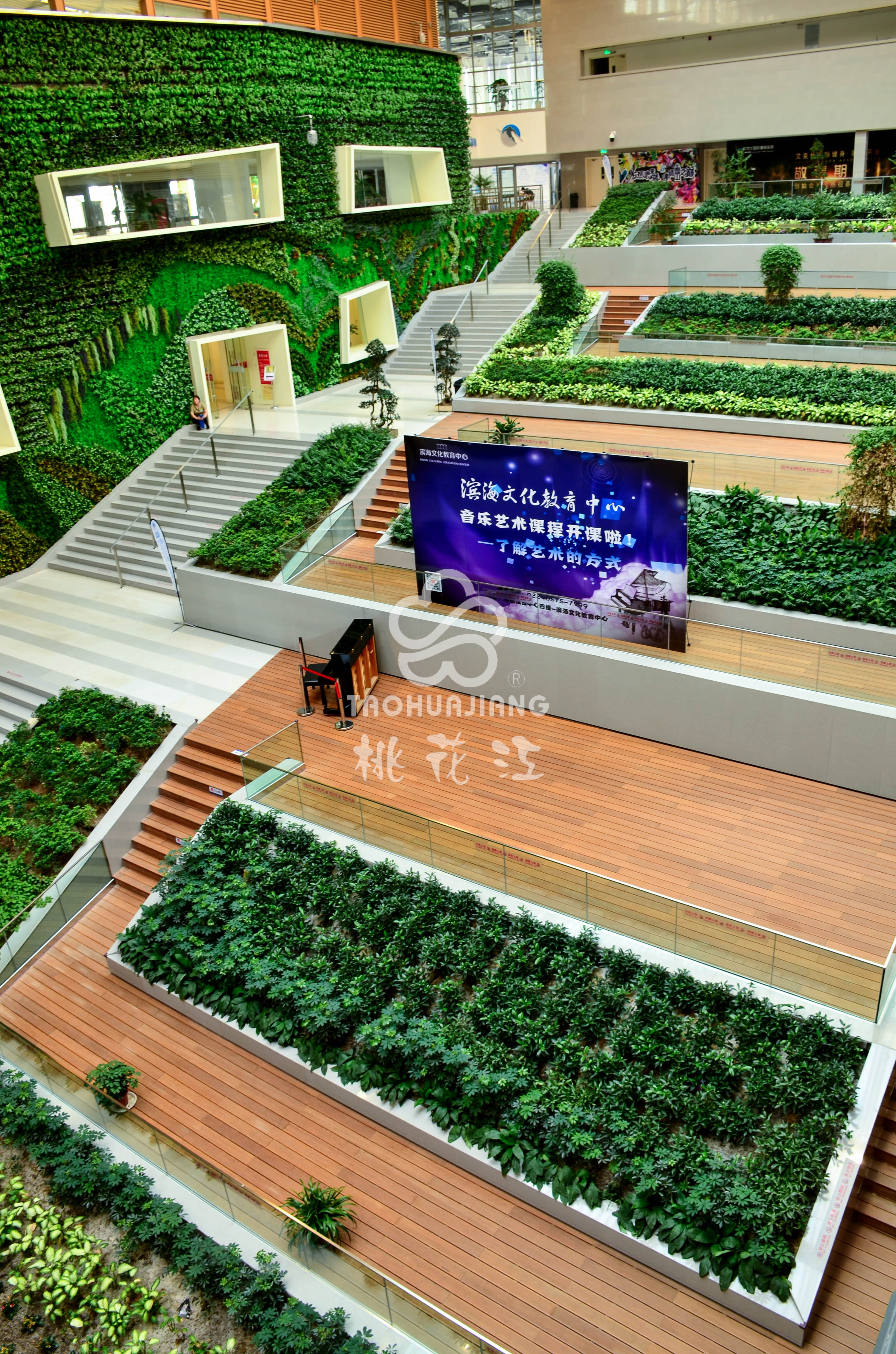 濱海新區(qū)文化中心項目中的市民活動中心區(qū)域采用桃花江戶外防腐竹地板。竹材深厚的文化底蘊與其優(yōu)異自然環(huán)保的性能一直是文化場館建設用材的首選。